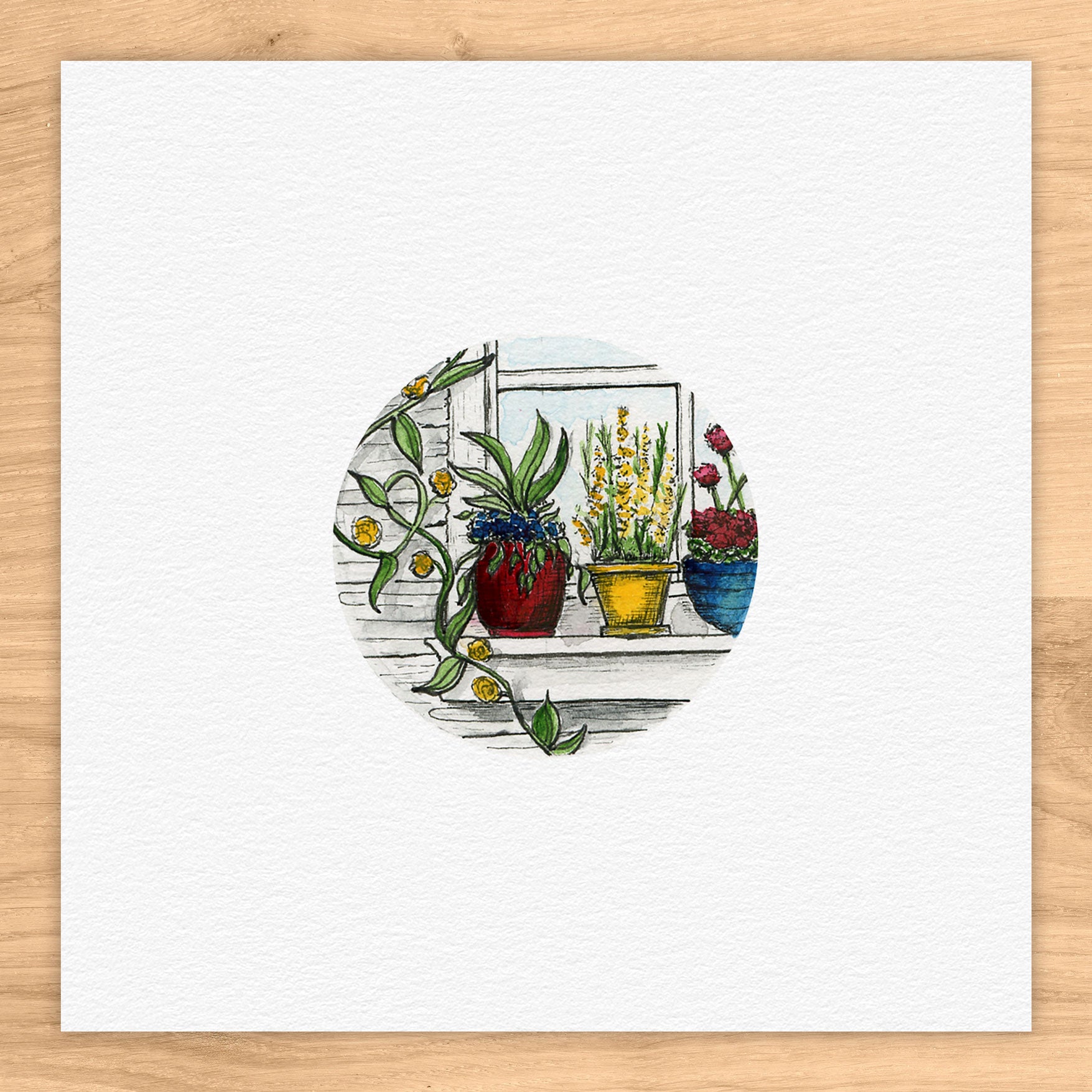 Window Sill Container Garden Watercolor Print