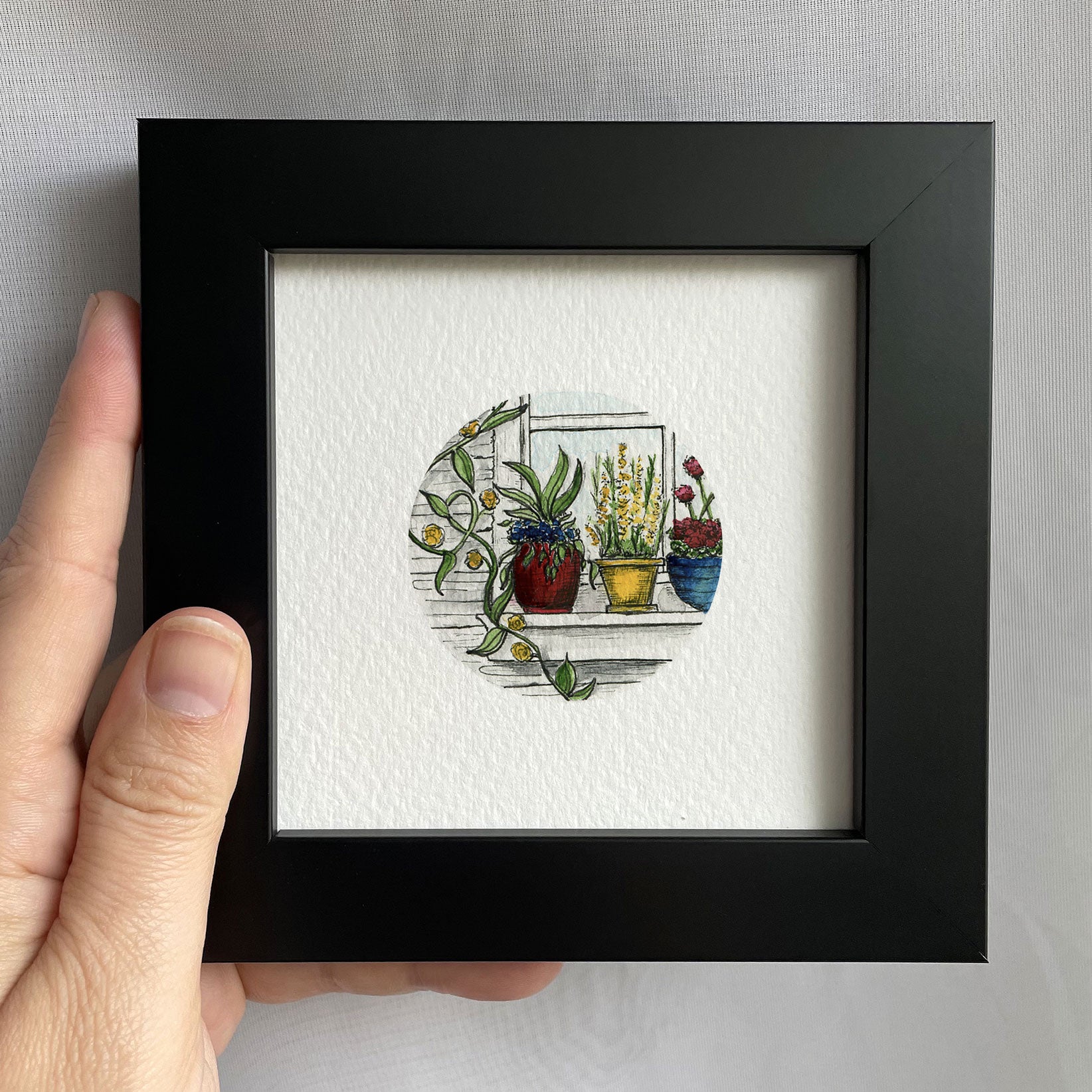 This is a giclee PRINT made from my original tiny watercolor and pen & ink art. This fine art quality, archival print is printed on watercolor paper and measures 4" by 4". The art is centered in the middle of the paper and measures 1.75"x1.75".