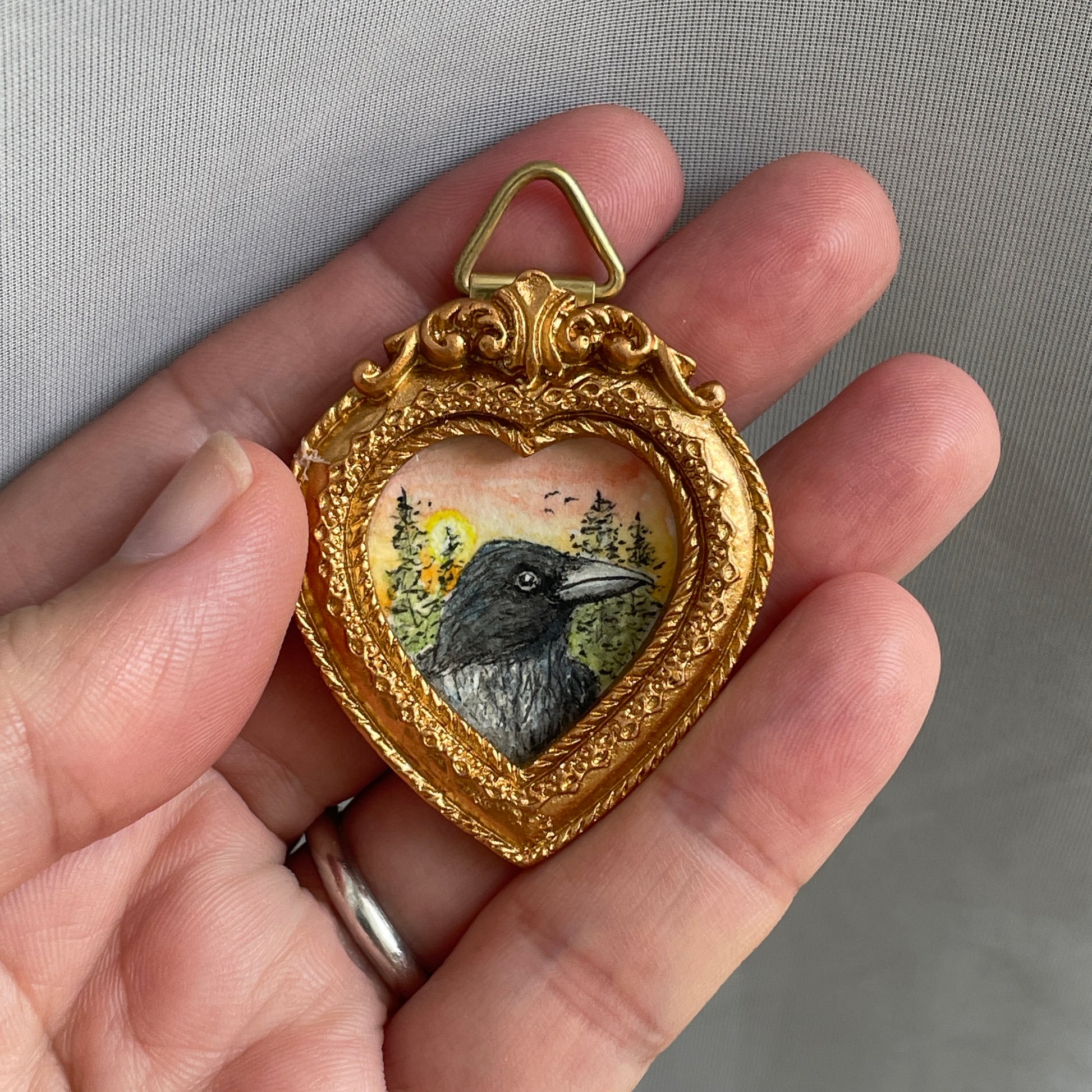 Crow at Sunset TEENY Art Original Watercolor Painting