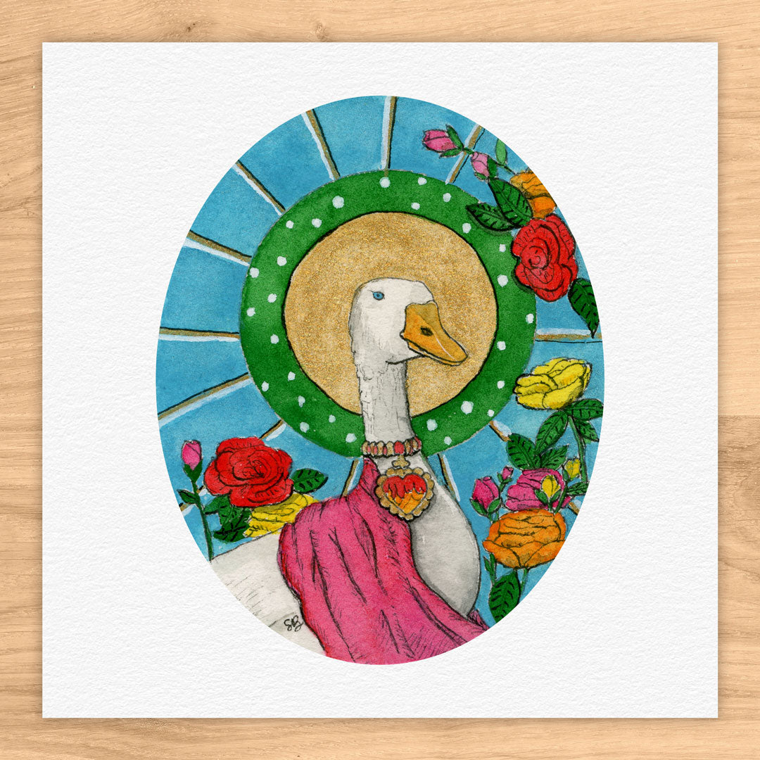 This is a giclee PRINT made from my original tiny watercolor and pen & ink art. This fine art quality, archival print is printed on watercolor paper and measures 4"4". xThe art is centered in the middle of the paper and measures 3.25"x2.75".