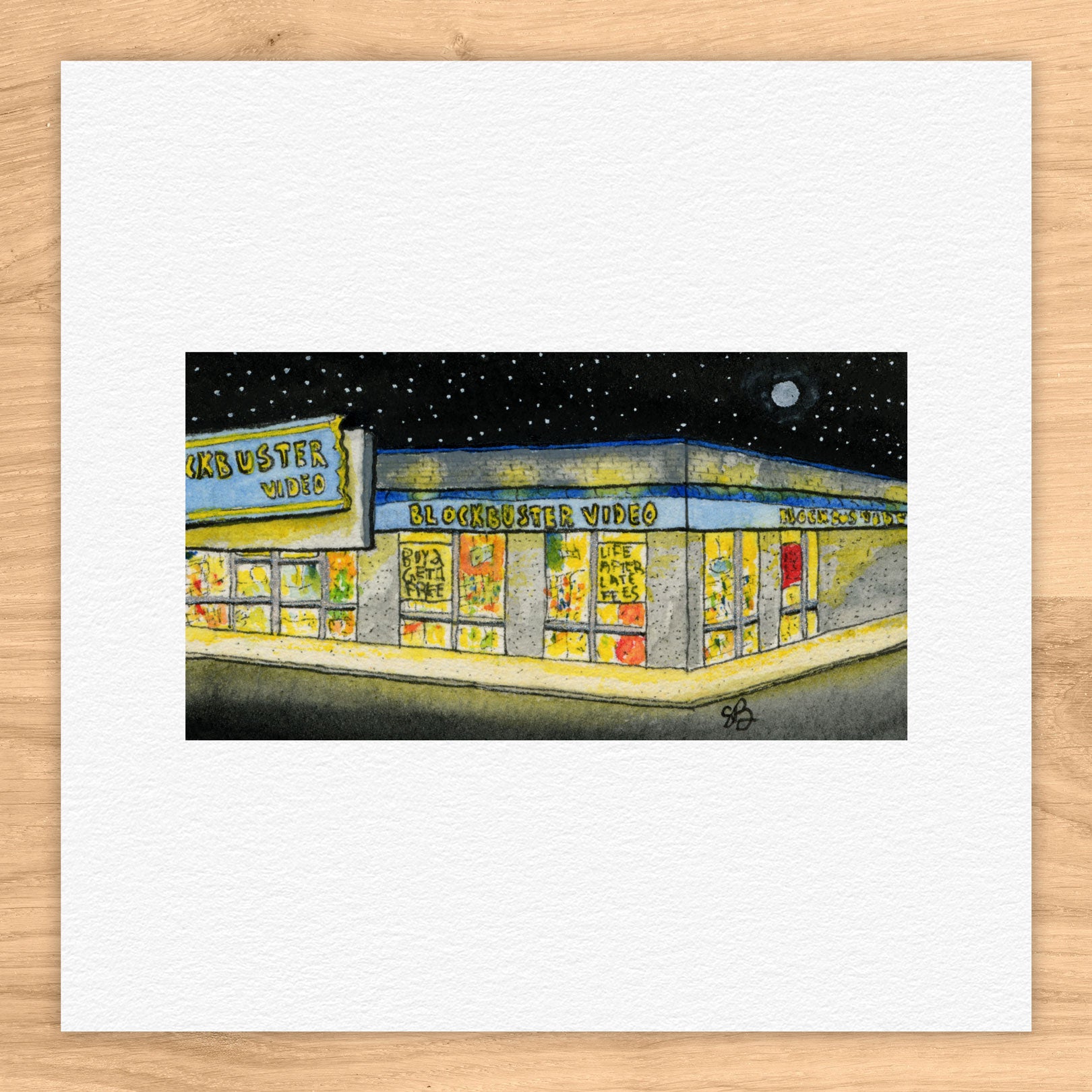 Portrait of a Blockbuster Video Tiny Art Watercolor Print