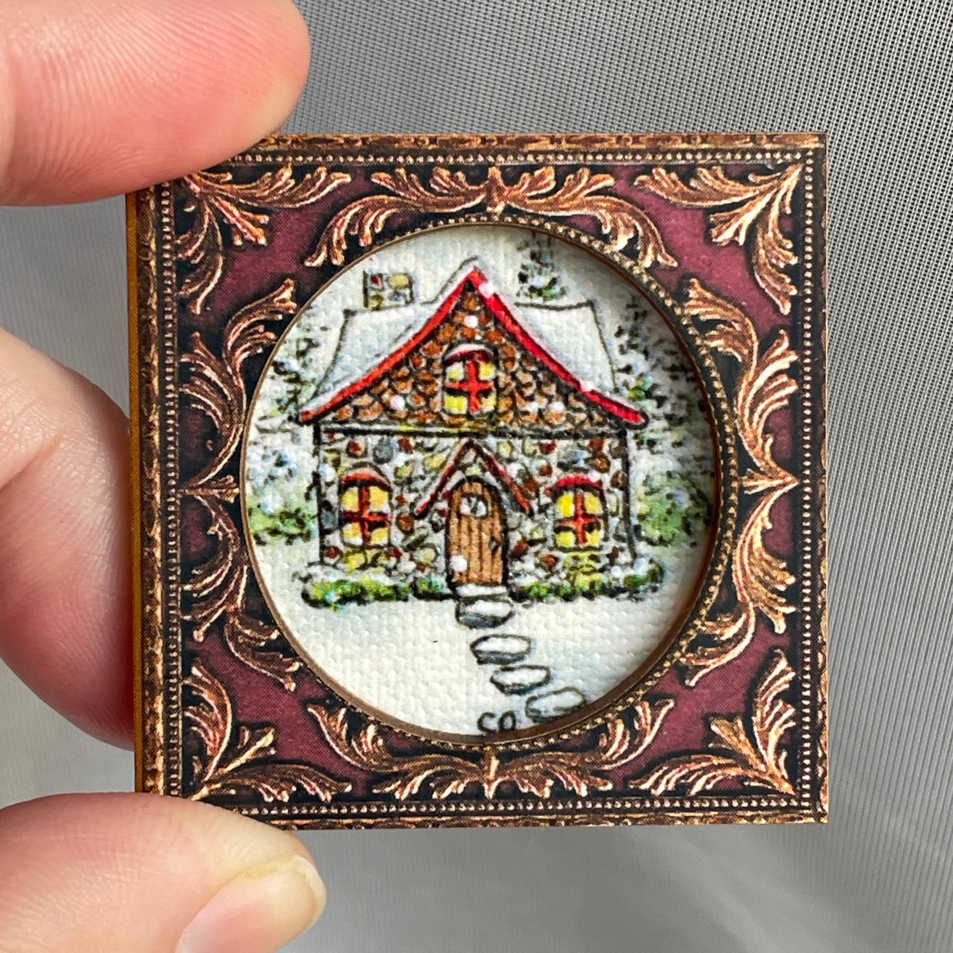 Snowy Stone Cottage Framed Canvas Print Magnet Tiny Art