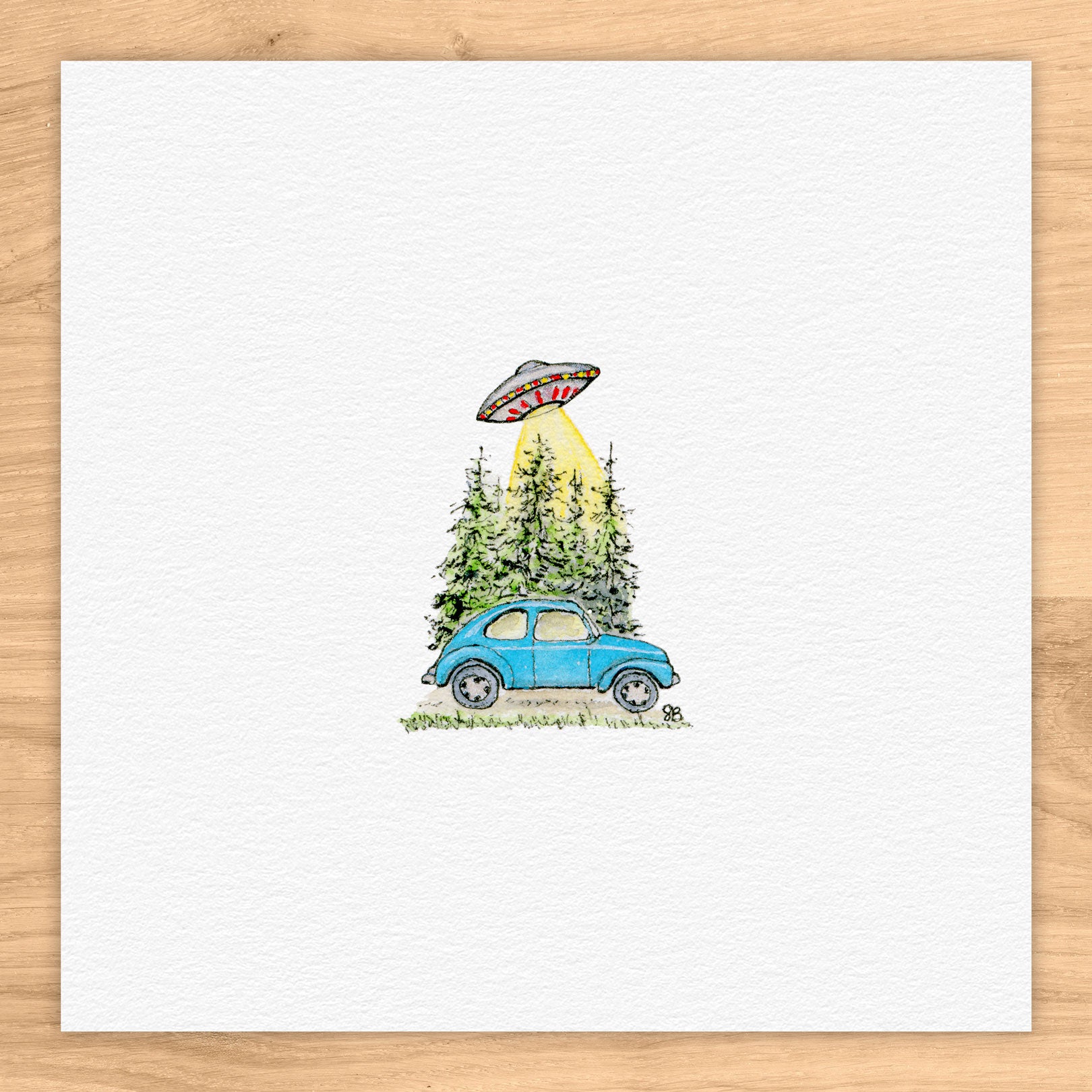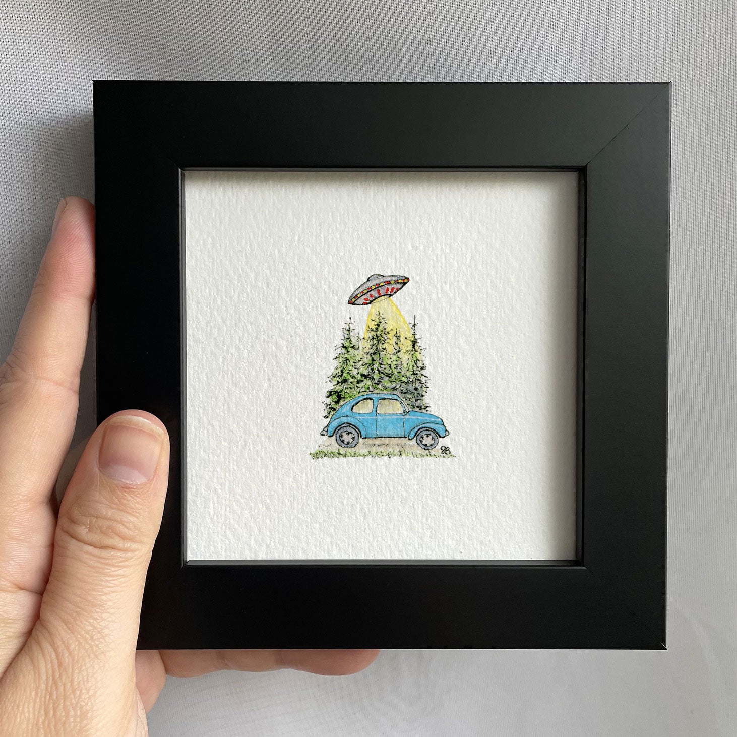 This is a giclee PRINT made from my original tiny watercolor and pen & ink art. This fine art quality, archival print is printed on watercolor paper and measures 4" by 4". The art is centered in the middle of the paper and measures 1"x1.5".